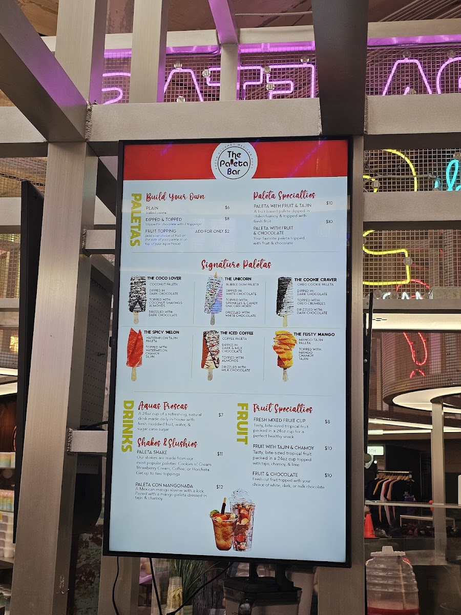 As the day winds down, lighter bites like gelato, cotton candy, or tres leches provide a sweet finish, especially enjoyable while taking in the rooftop views. The diverse menu also includes comforting choices like ramen beef or Nashville hot chicken, blending familiar tastes with a casual food hall feel that encourages sharing and discovery.